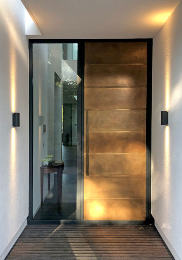 The plan and section of the house are organised around a central, full-height volume that forms the primary spatial and visual axis of the home. From the front entrance, this top-lit hall establishes a clear and direct connection through the